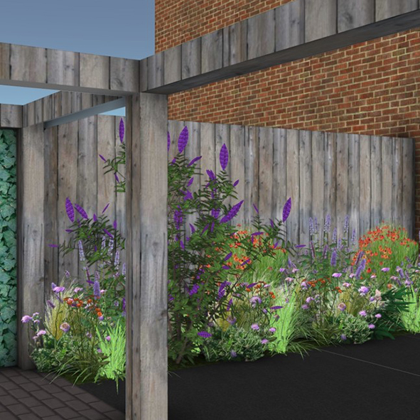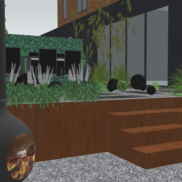 Het is een speels ontwerp en dat vinden we zo leuk omdat het echt iets anders is dan een standaard tuin!